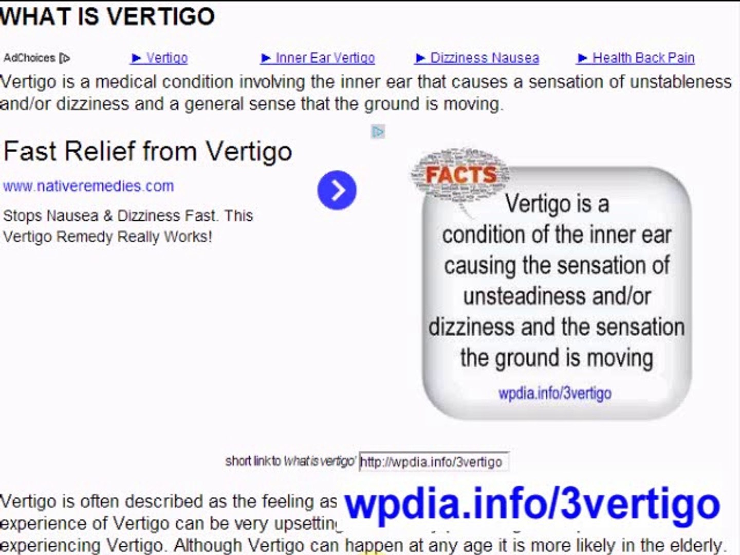 Vertigo distorts your sense of direction and the spatial perception of your body. Vertigo causes may include disorders of the brain and inner ear including labyrinthitis, vestibular neuritis, migraine headaches, and meniere's unfortunately, there are many causes of vertigo. If you have vertigo, you may only experience dizziness for a short period of time (minutes). The gp will ask about your symptoms to try to find out what type of vertigo you have. Benign paroxysmal positional vertigo (bppv) is the most common form of vertigo and is characterized by the brief head trauma and neck injury may also result in vertigo, which usually goes away on its own.